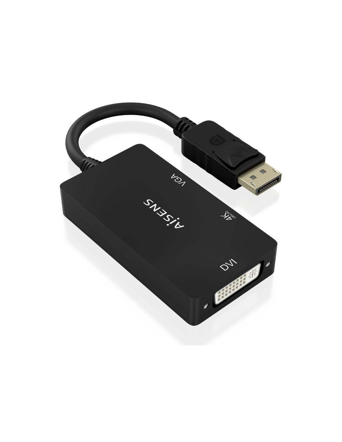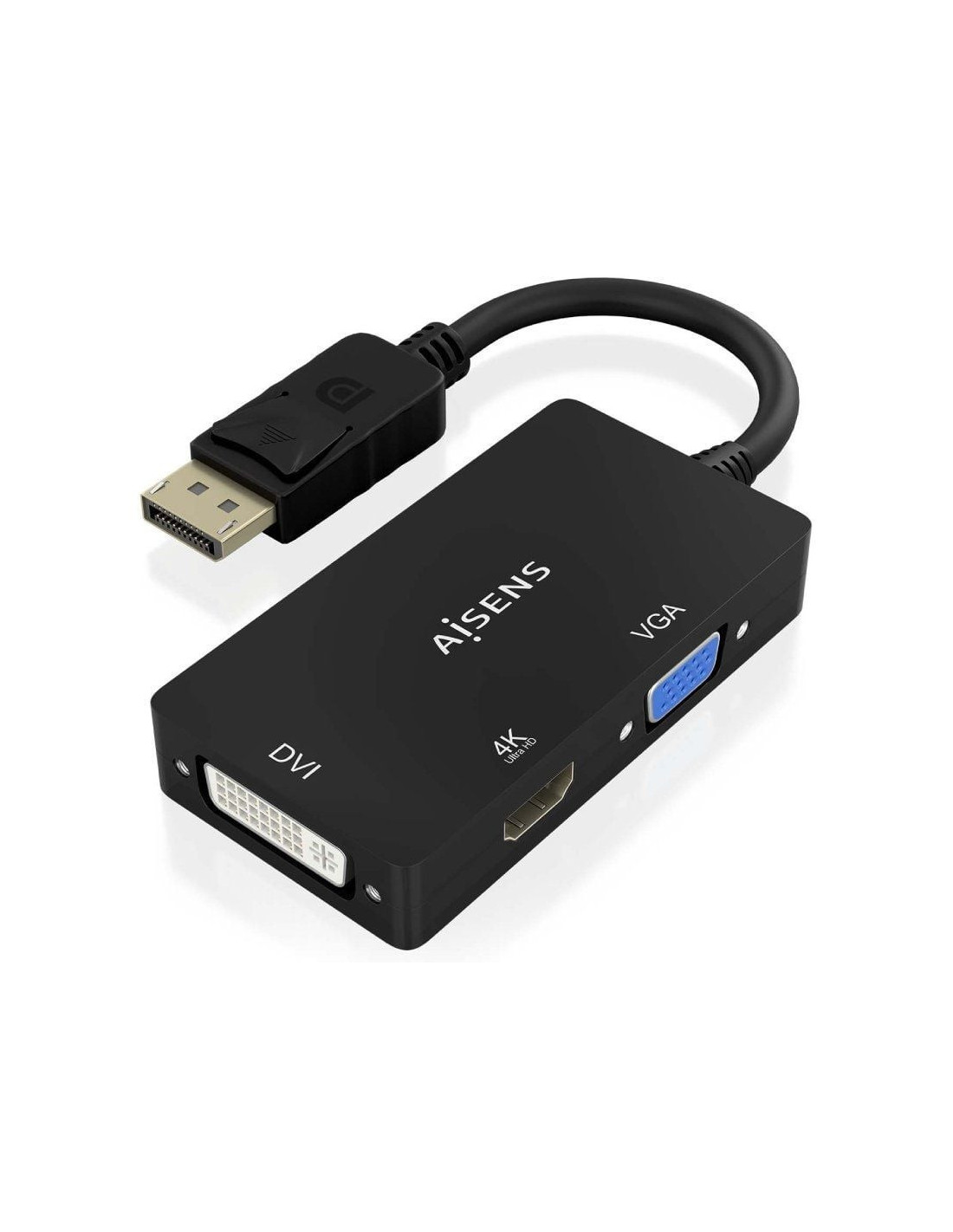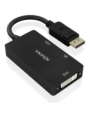 AISENS - CONVERSOR DISPLAYPORT V1.2 A VGA/DVI/HDMI, DP 1.2/M-VGA/H-DVI/H-HDMI/H 4K, NEGRO, 15CM