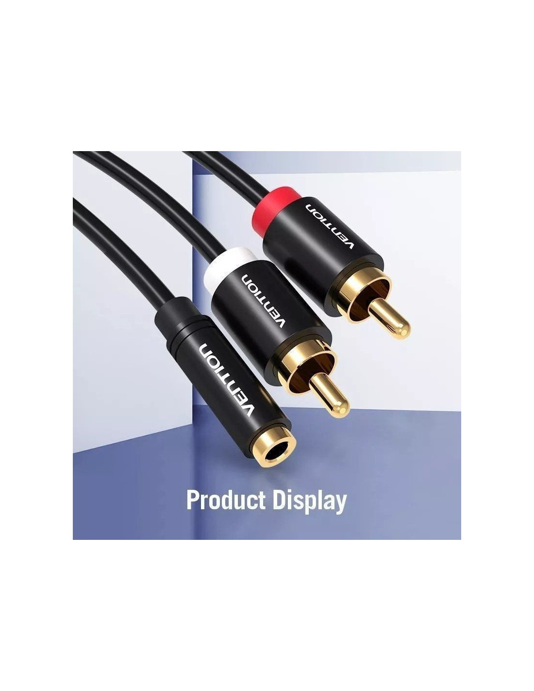 Cable estéreo vention vab-r01-b200/ jack 3.5 hembra - 2x rca macho/ 2m/ negro