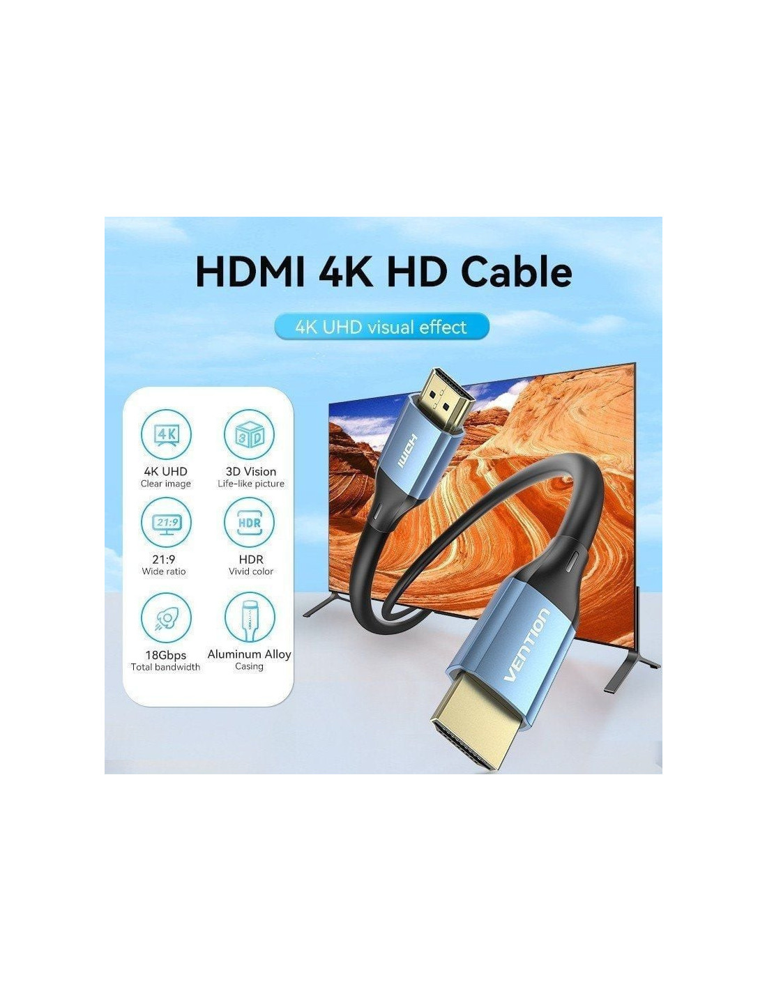 Cable hdmi 2.0 4k vention alhsf/ hdmi macho - hdmi macho/ 1m/ azul