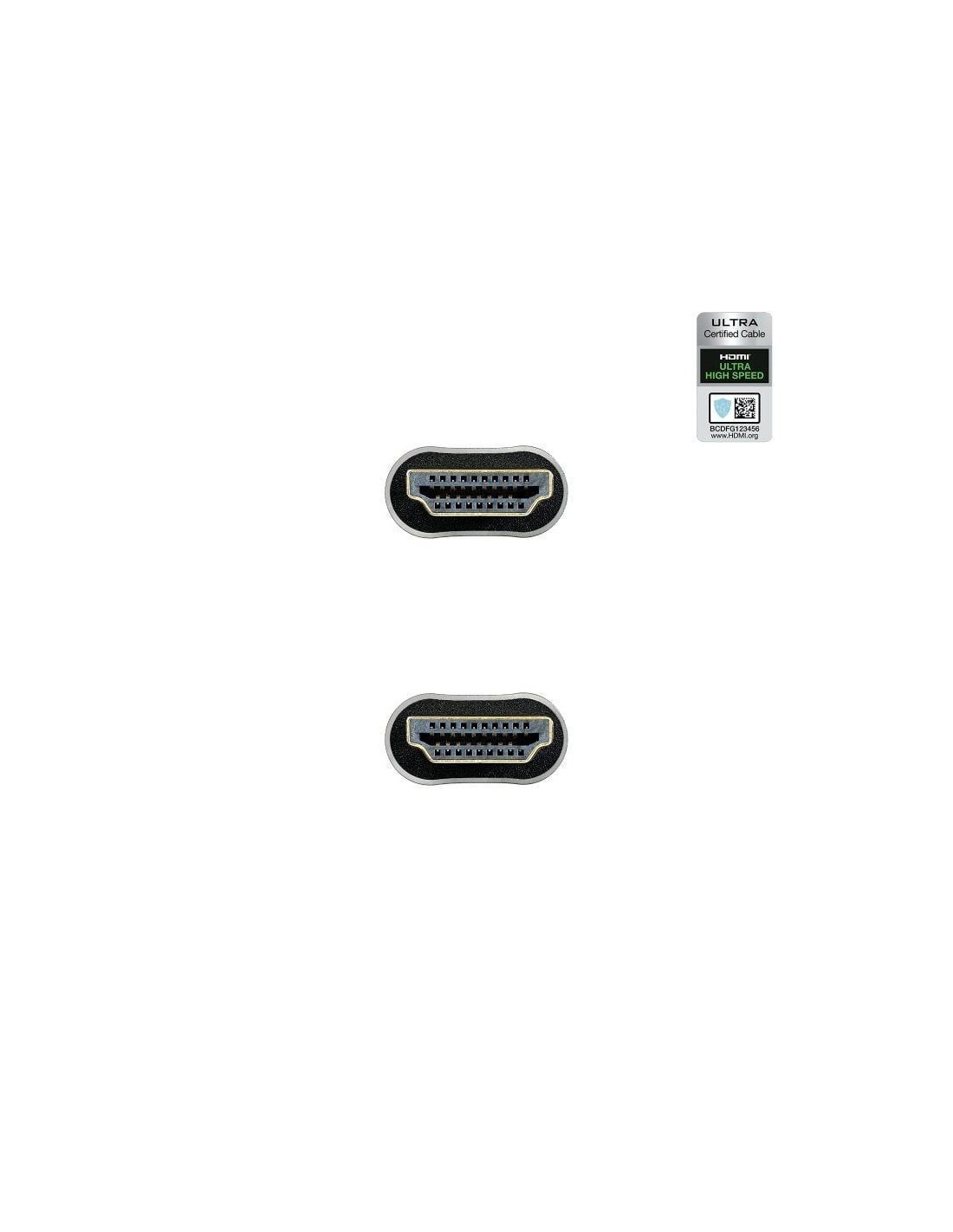 - Este cable lleva la certificación Ultra High Speed (Ultra High Speed HDMI Certified Cable), esto garantiza que es un cable HDMI 2.1 auténtico y la máxima transmisión de señal entre los dispositivos y por lo tanto la mejor calidad en audio y vídeo.