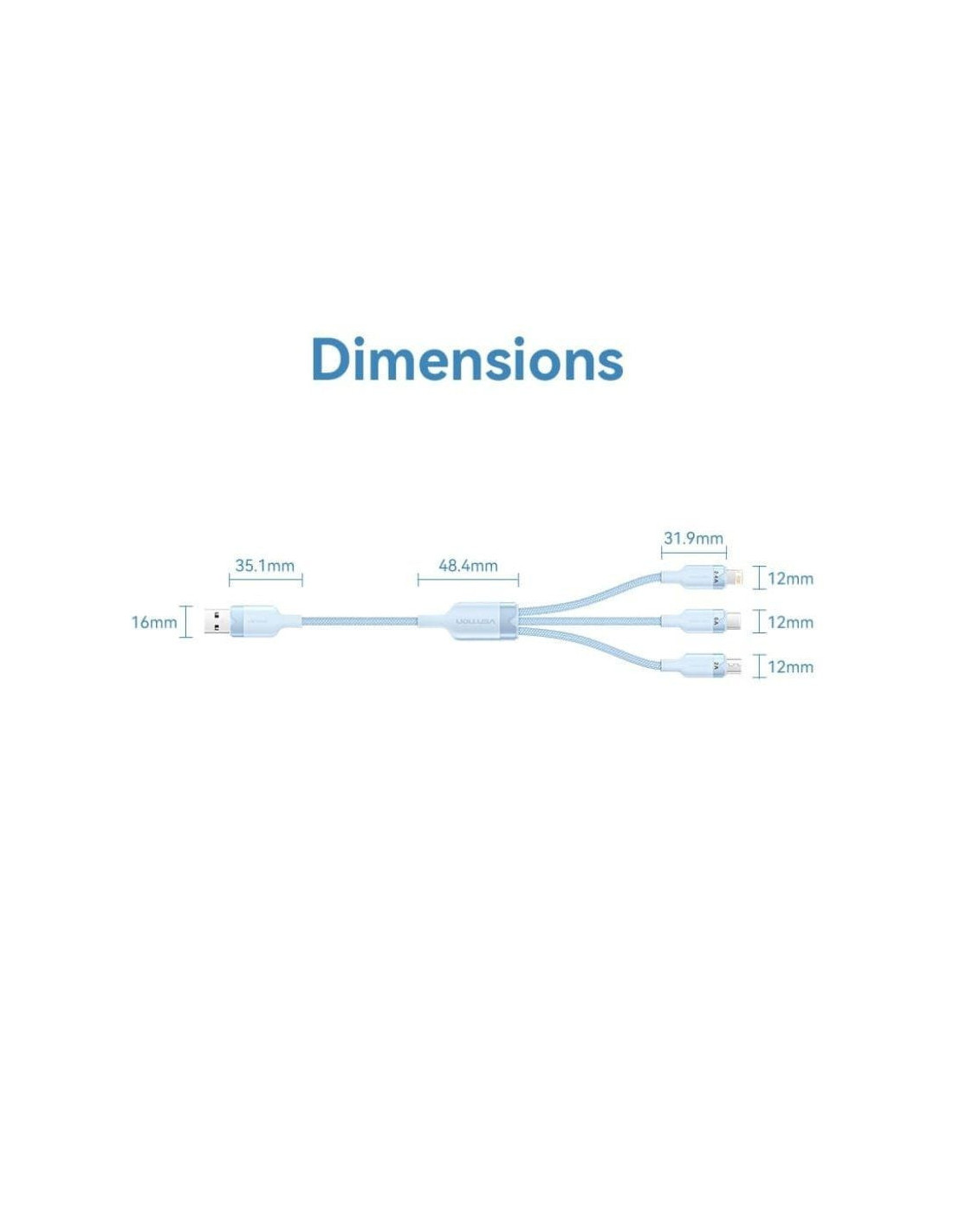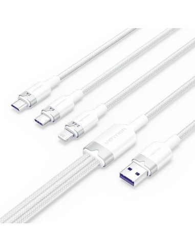 ¿Está cansado de buscar entre una maraña de cables el adecuado para cargar su teléfono o tableta? ¿Tiene que guardar y deshacer constantemente varios cables de carga cuando viaja? El cable USB 3 en 1 de Vention ofrece una solución simple pero elegante para este problema tan común. Este cable versátil está diseñado para simplificar sus necesidades de carga y transferencia de datos al incorporar tres tipos de conectores diferentes en un solo cable duradero.