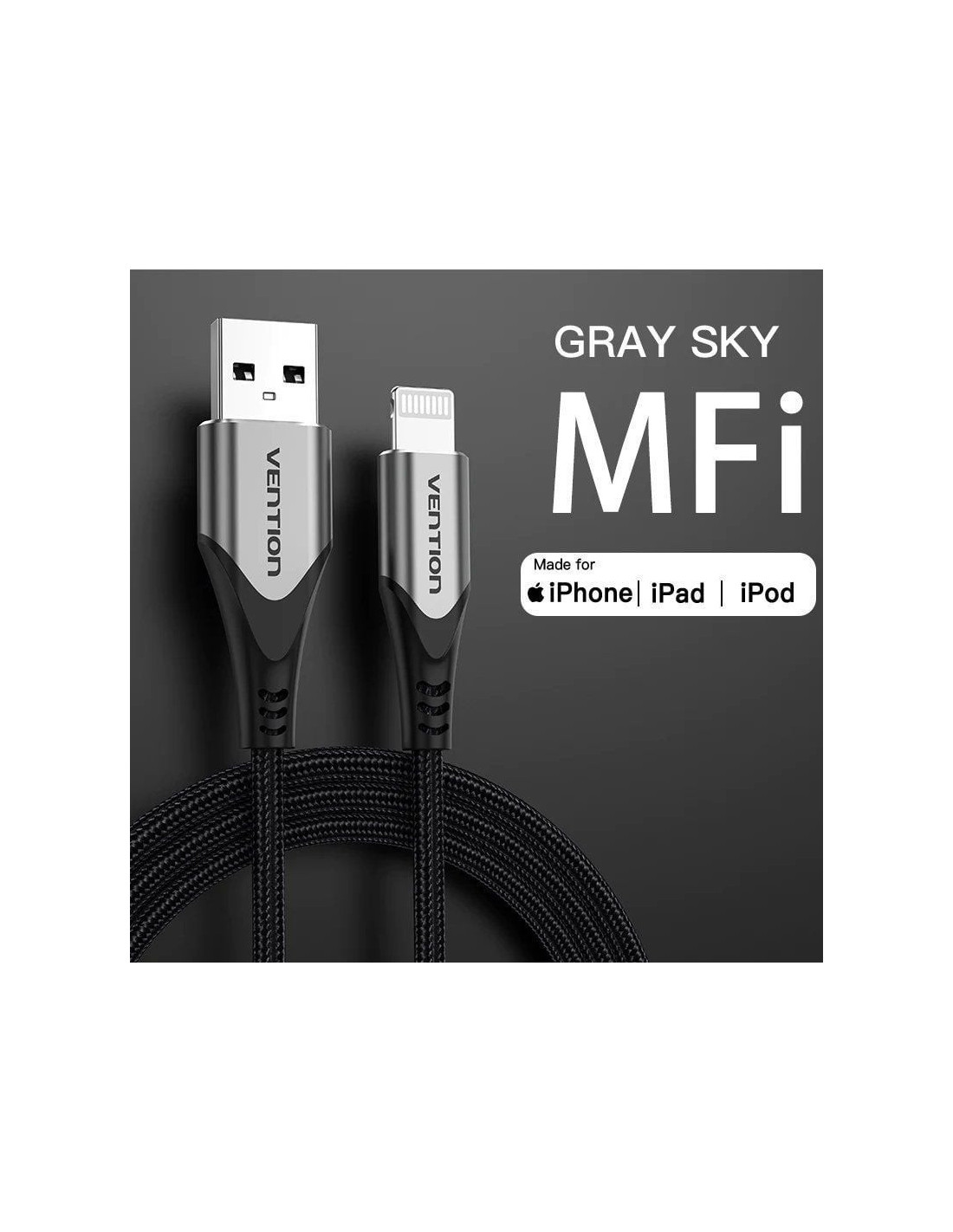 Cable usb 2.0 lightning vention labhd/ usb macho - lightning macho/ hasta 12w/ 480mbps/ 50cm/ gris