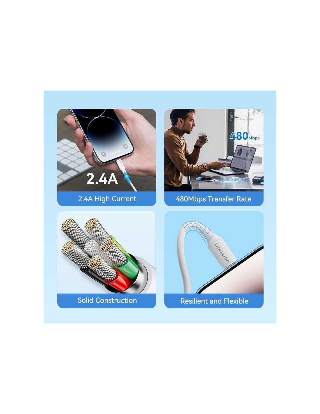 Cable usb 2.0 lightning vention laiwf/ usb macho - lightning macho/ 480mbps/ 1m/ blanco