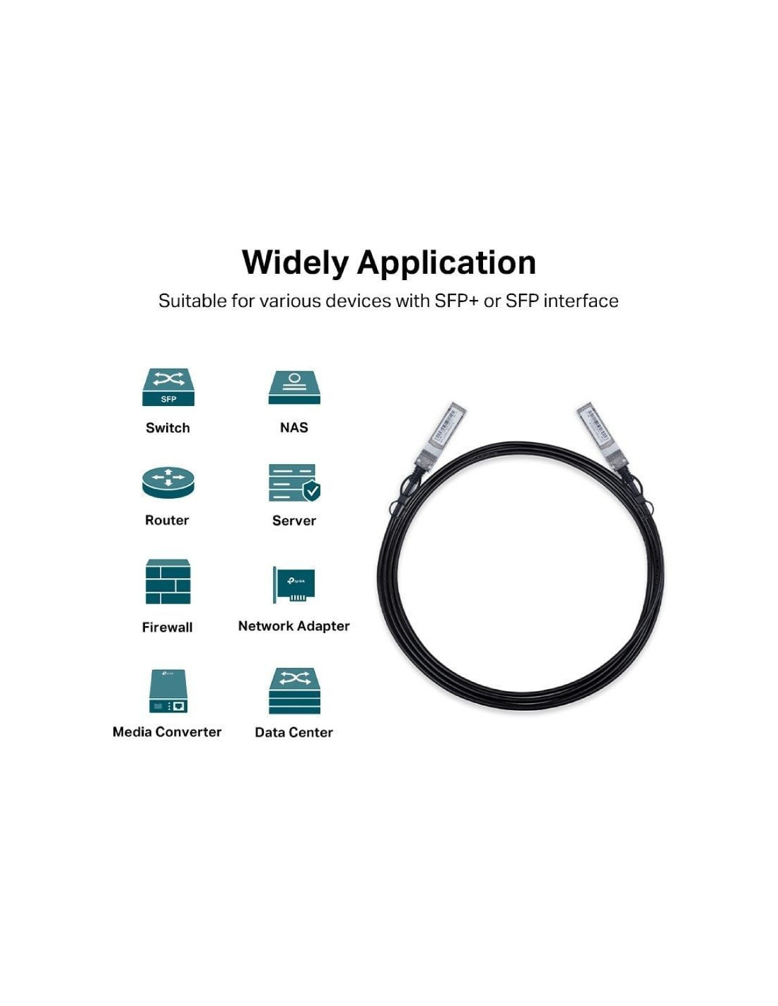 Con un conjunto de cable pasivo de doble eje de 3 metros y dos conectores SFP + en cada lado, TL-SM5220-3M es adecuado para distancias cortas y ofrece una forma rentable de conectarse dentro de racks y entre racks adyacentes.