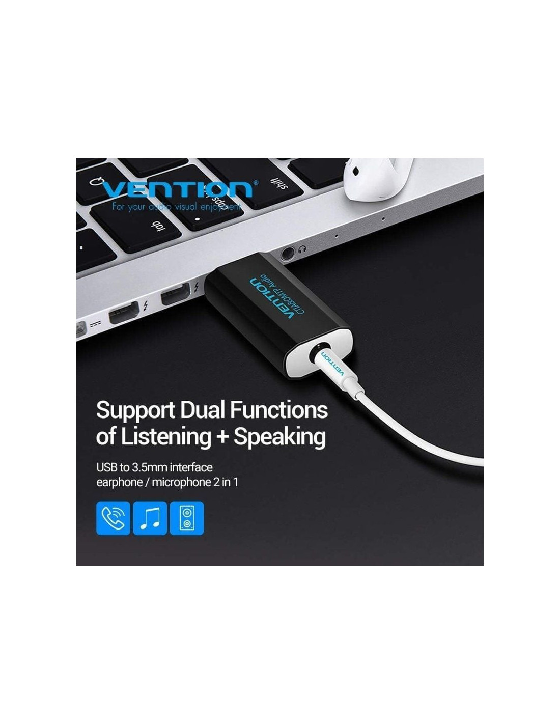 Tarjeta de sonido vention vab-s15-b/ usb macho - jack 3.5 hembra