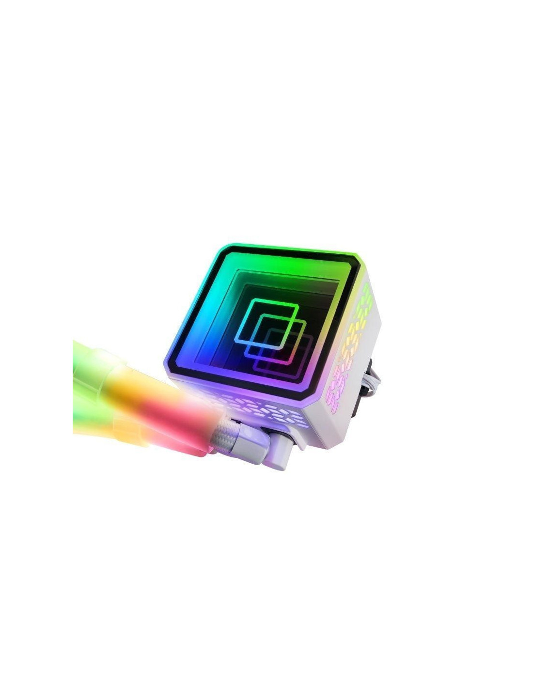 La refrigeración líquida más espectacular y potente. Espejo infinito, tubos y ventiladores ARGB 360º y un rendimiento excepcional en sistemas de refrigeración líquida con una extraordinaria potencia de hasta 650W. Nueva bomba OPTI-CHAMBER de tercera generación, 3x ventiladores silenciosos FDB ARGB, radiador de baja resistencia y compatibilidad universal.ILUMINACION INFINITA ARGB 360º