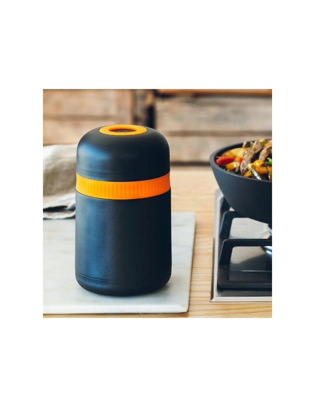El termo para alimentos es un recipiente ideal para llevar y mantener la comida caliente allí donde vayas. Una opción perfecta para el táper de cada día si comes en la oficina, para las excursiones de los fines de semana, para llevarte la cena del pícnic en la playa o en la montaña o para cuando te apetece comer fuera de casa sin preocuparte por el menú, por tener que calentarlo o por mantenerlo fresco. Es muy fácil y cómodo de transportar, gracias a su anilla de silicona a modo de asa. Y al estar fabricado en acero inoxidable, es muy higiénico y no absorberá olores ni sabores, por lo que es muy práctico y una opción perfecta para comer en él directamente, sin tener que ensuciar nada más.
