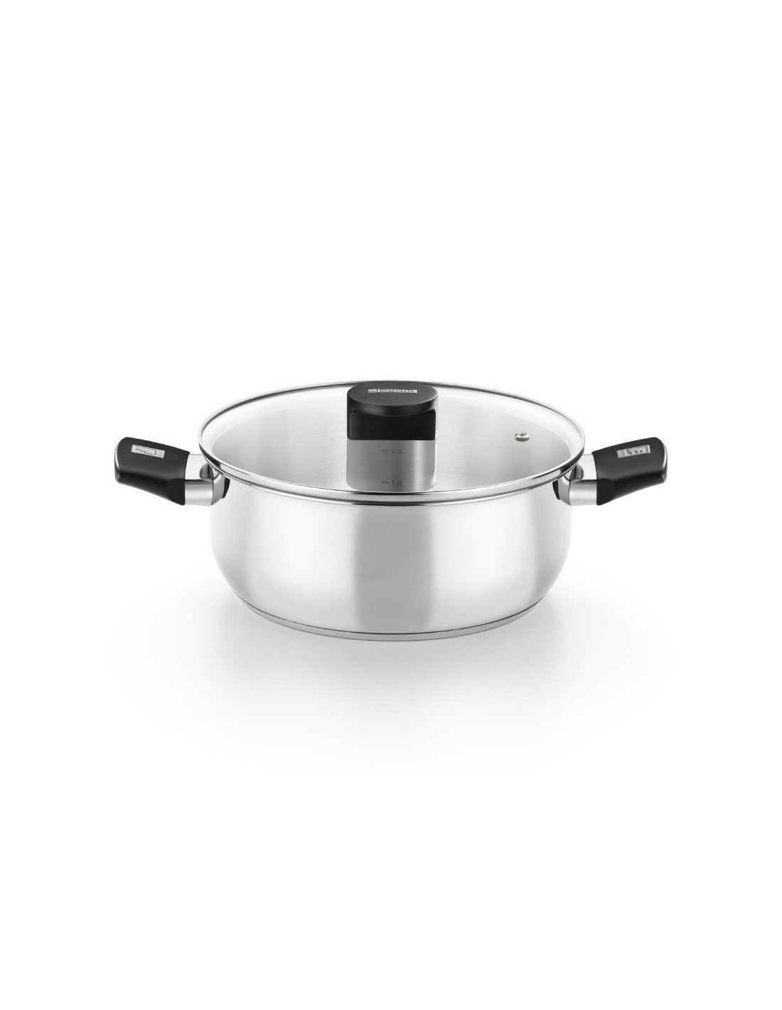 - Tapa de vidrio termoresistente con aro de acero inoxidable.