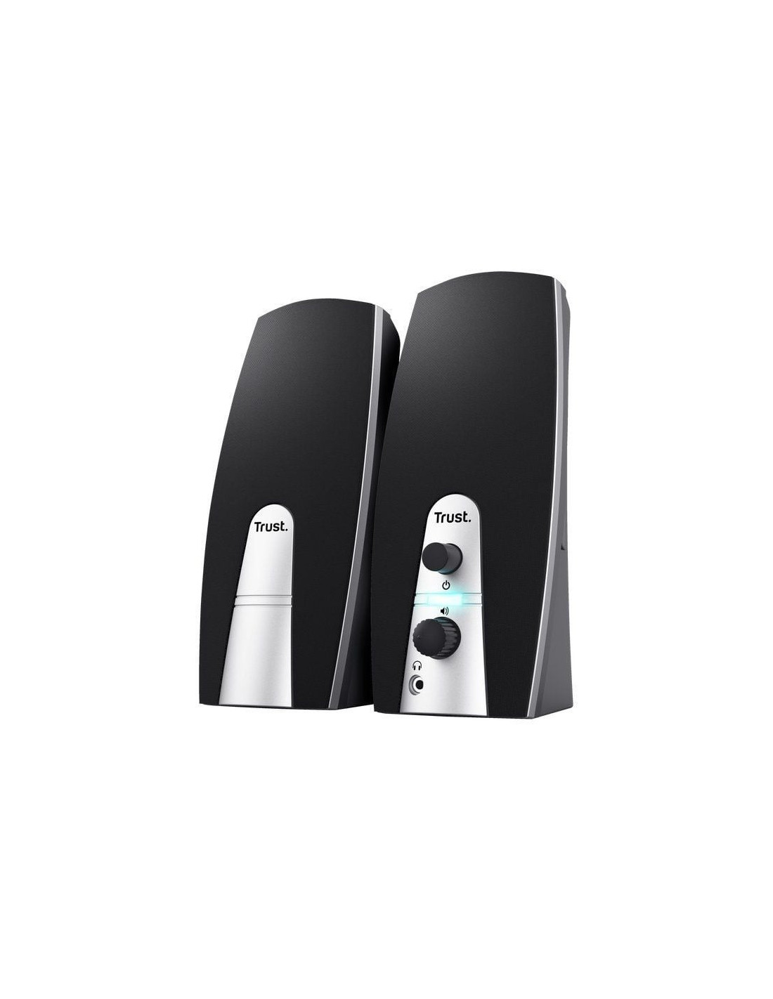 Compacto juego de altavoces estéreo con potencia de salida RMS de 5 Vatios (máx. potencia: 10 vatios)