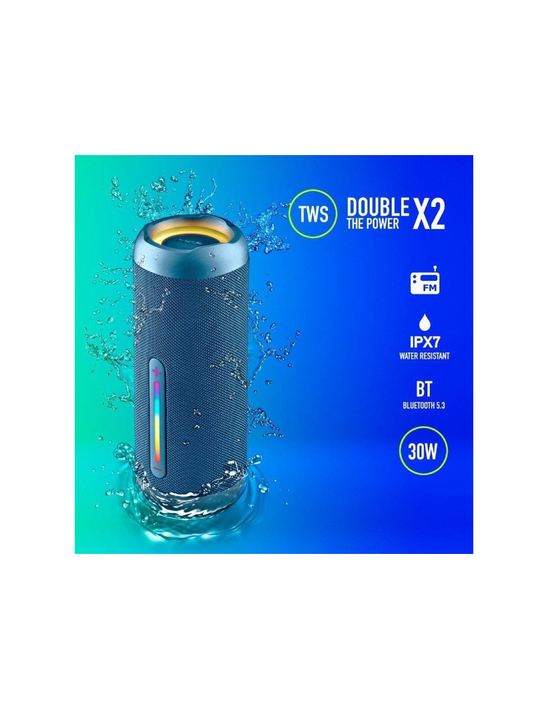 - TWS (consigue doble potencia conectando 2 altavoces al mismo tiempo sin cables)