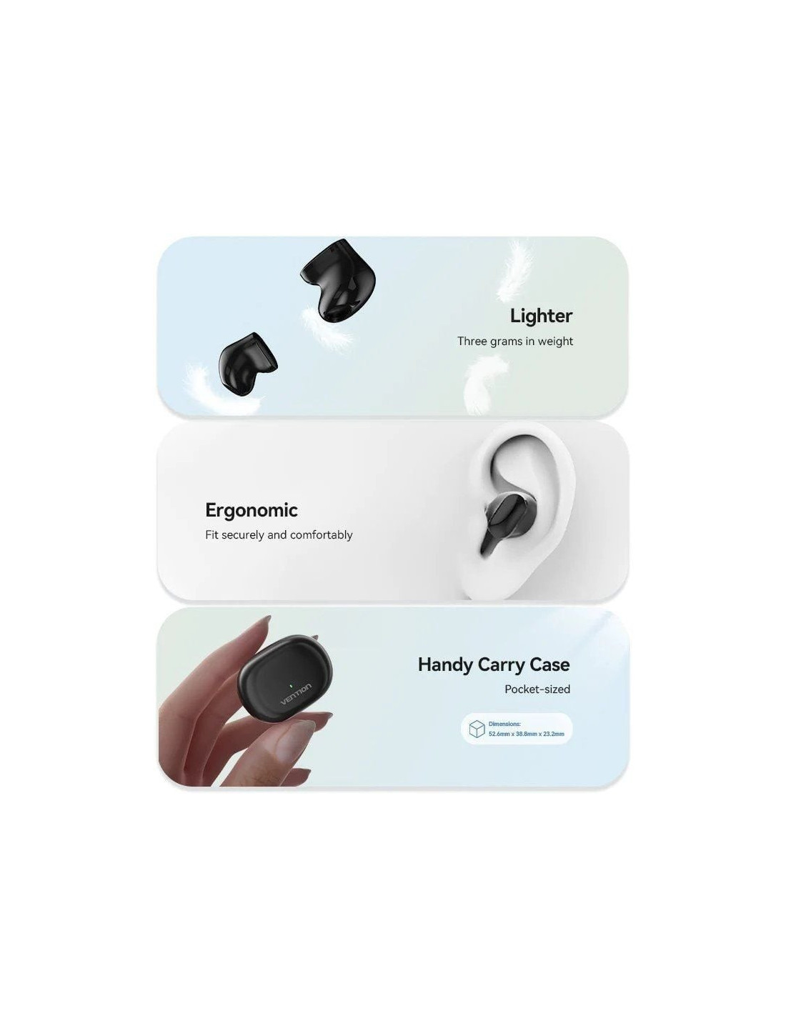 Auriculares bluetooth vention tiny t12 nblb0 con estuche de carga/ autonomía 6h/ negros