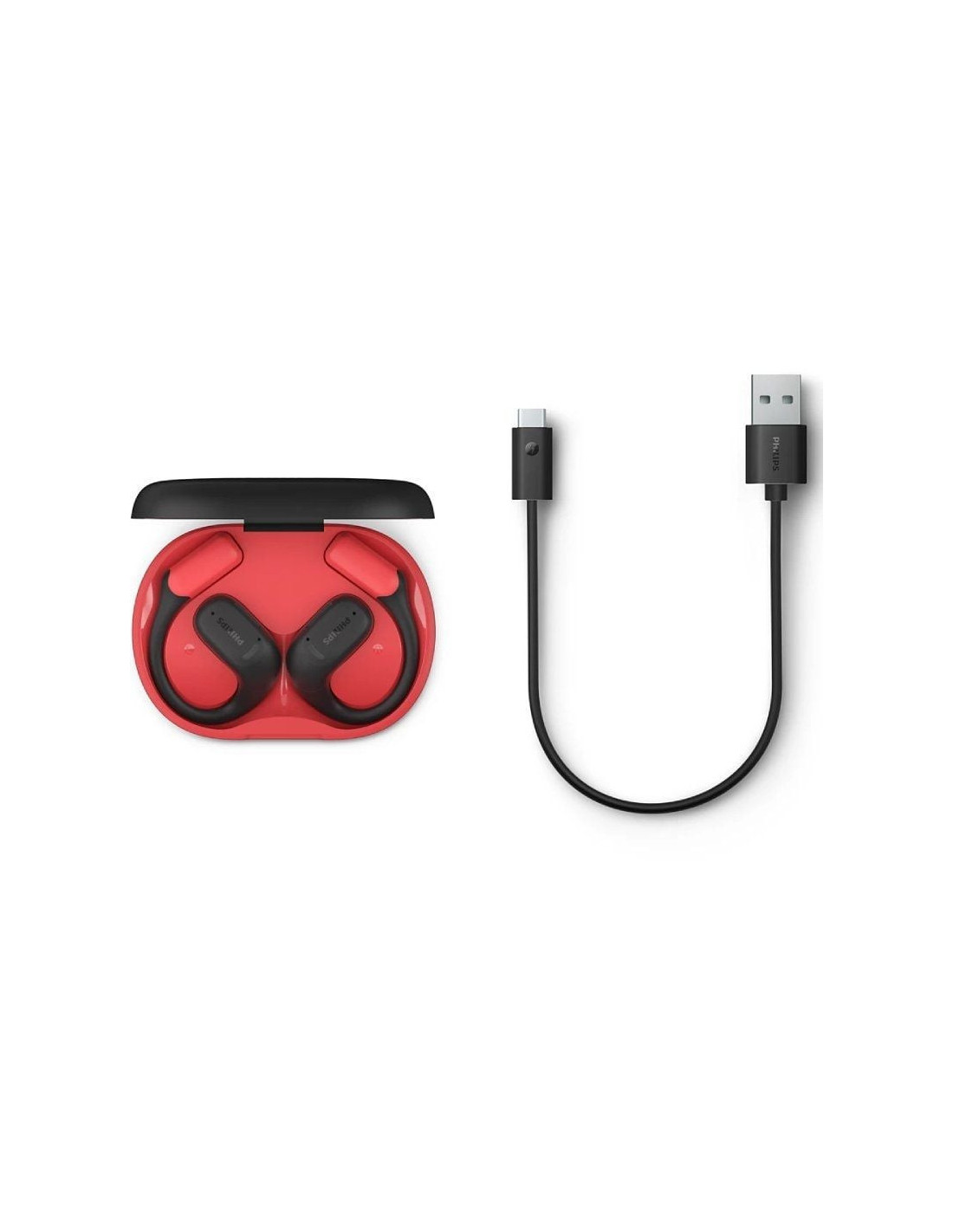 Auriculares deportivos bluetooth philips taa6709bk con estuche de carga/ autonomía 7h/ negros y rojos