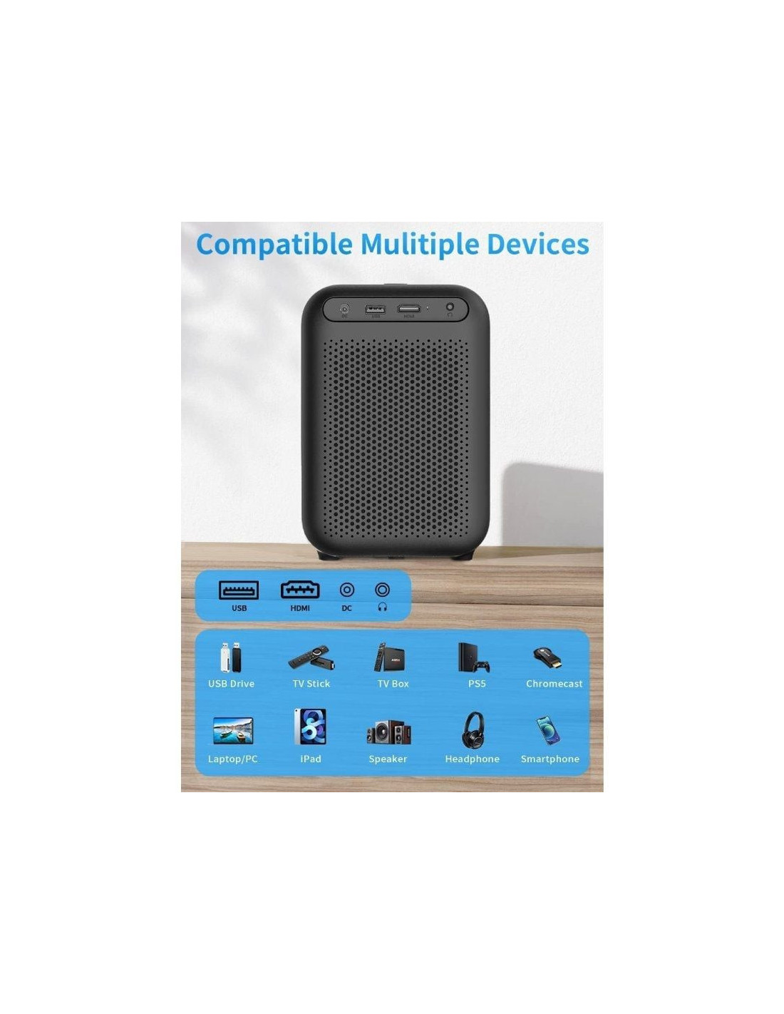 - WiFi 5G y proyector Bluetooth: TT está equipado con WiFi 5G ultrarrápido, lo que garantiza una experiencia de transmisión sin demoras para juegos en línea y transmisión de video sin interrupciones. También cuenta con una función inalámbrica para compartir pantalla, que le permite transmitir contenido sin esfuerzo desde sus dispositivos Android para una visualización cómoda. Además, el proyector es compatible con Bluetooth 5.1, lo que le permite conectar fácilmente sus auriculares, parlantes u otros equipos de audio preferidos para disfrutar de una experiencia de audio envolvente.