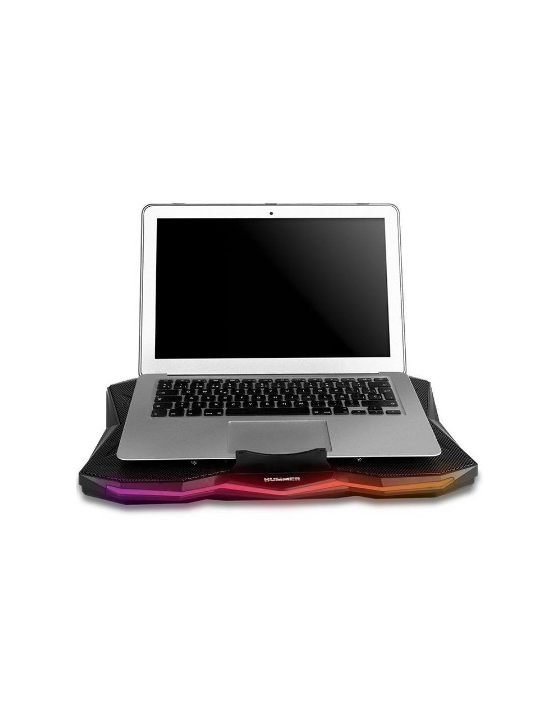 Nox Hummer PRO stand es un soporte refrigerador con iluminación RGB para portátiles de hasta 17,3” que incorpora un poderoso ventilador de 170 mm y dos USB 2.0 para conectar los periféricos. Esta base refrigeradora permite mejorar la postura corporal gracias a su inclinación regulable, que posibilita posicionar la pantalla del portátil a la altura de la vista.