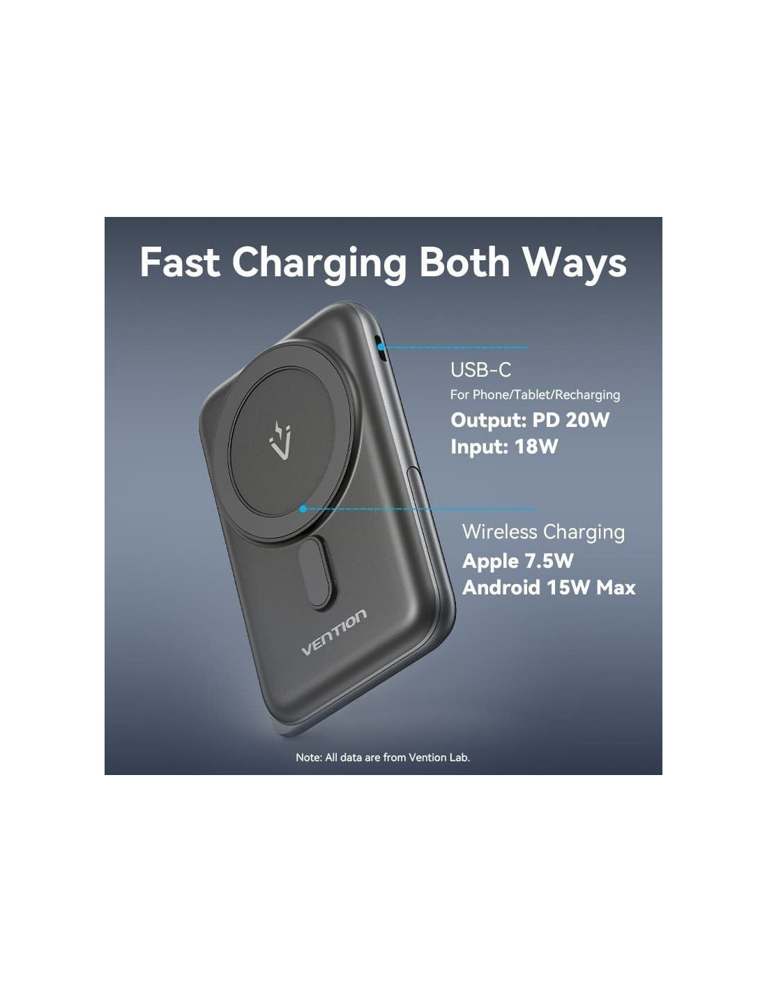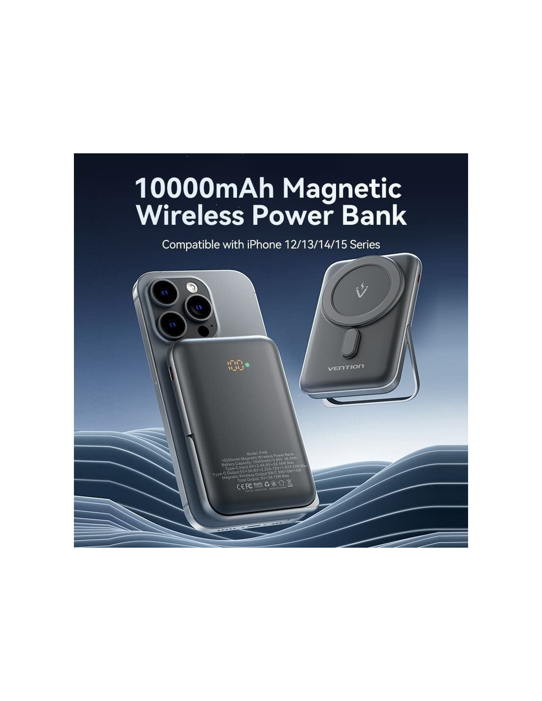 Presentamos el Power Bank magnético inalámbrico Vention de 10 000 mAh, una solución de carga elegante y potente diseñada para tu estilo de vida en movimiento. Compatible con los iPhone de la serie 12 a 15, este power bank garantiza que nunca te quedes sin batería cuando más la necesitas. Su diseño sofisticado y su tecnología avanzada lo convierten en el compañero perfecto para tus dispositivos.