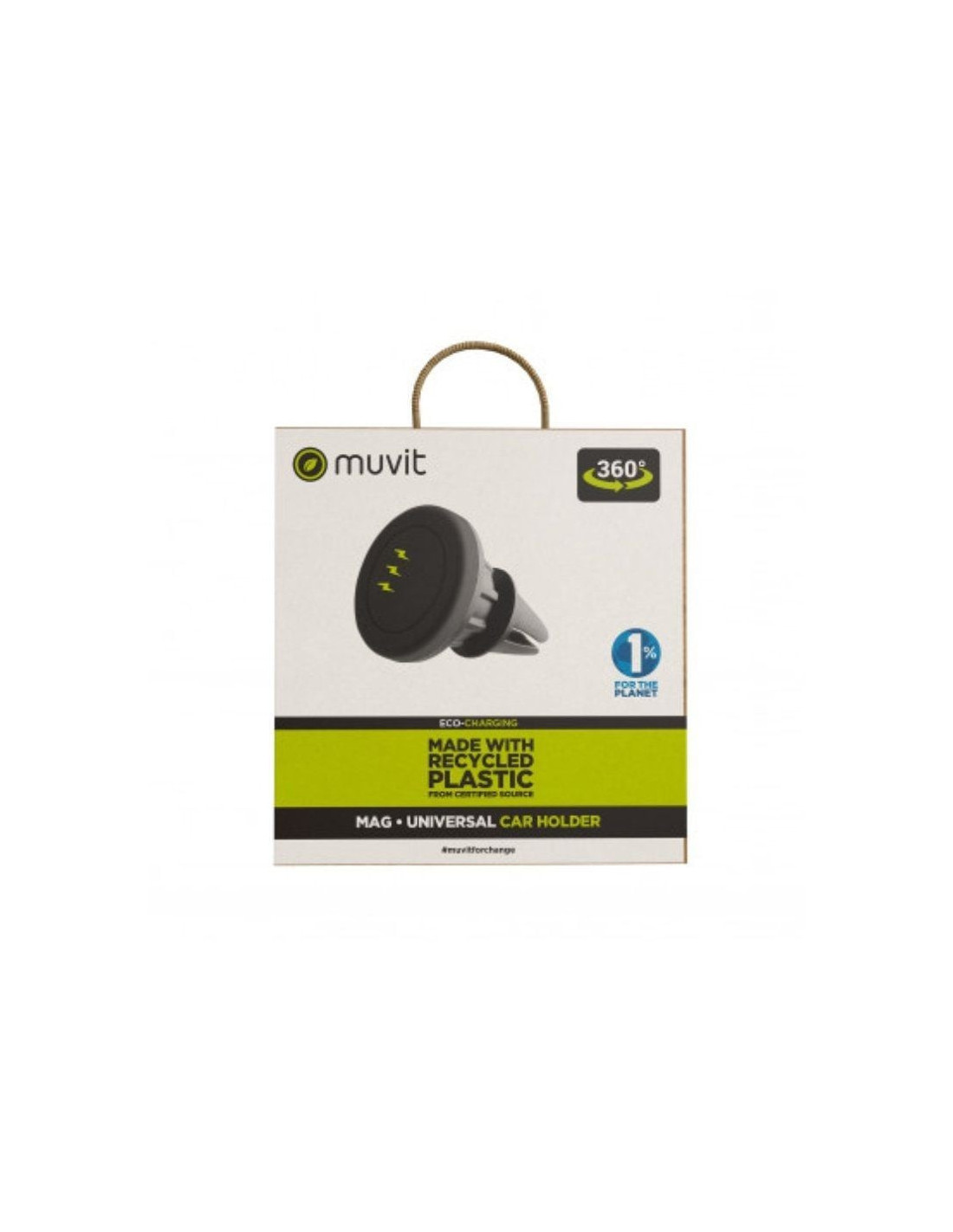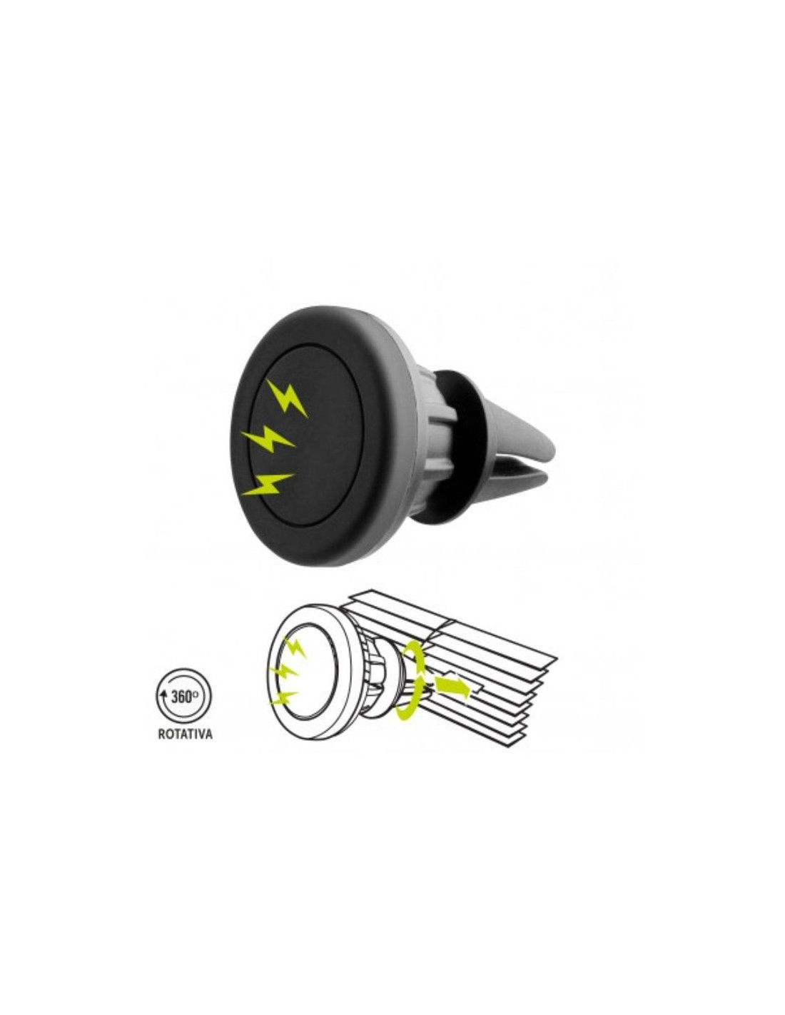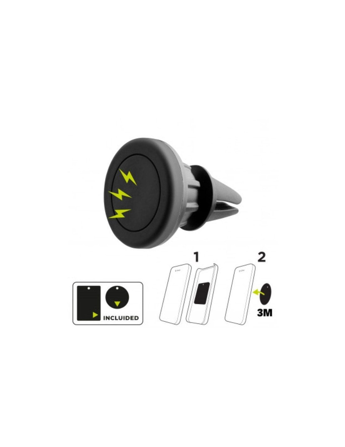 MUVITSoporte de móvil para coche con sujeción de pinza para la rejilla del aire acondicionado y colocación del dispositivo mediante imán magnético. El pack incluye dos placas magnéticas para adherir en la parte trasera del teléfono o entre teléfono y funda, de forma que pueda hacer contacto con la parte imantada del soporte y proporcionar una perfecta y cómoda sujeción.