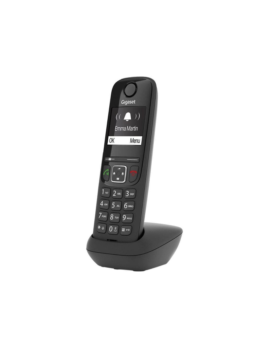 El Gigaset AS690 facilita la comunicación: con 14 horas de tiempo en conversación, puede estar seguro de que siempre podrá hablar con sus contactos en cualquier momento. La guía telefónica integrada del dispositivo puede contener hasta 100 nombres y números. Además, se enumeran automáticamente las últimas 25 llamadas y la hora en que sonaron. Con un tiempo de espera de 180 horas, las personas que llaman siempre podrán comunicarse con usted.